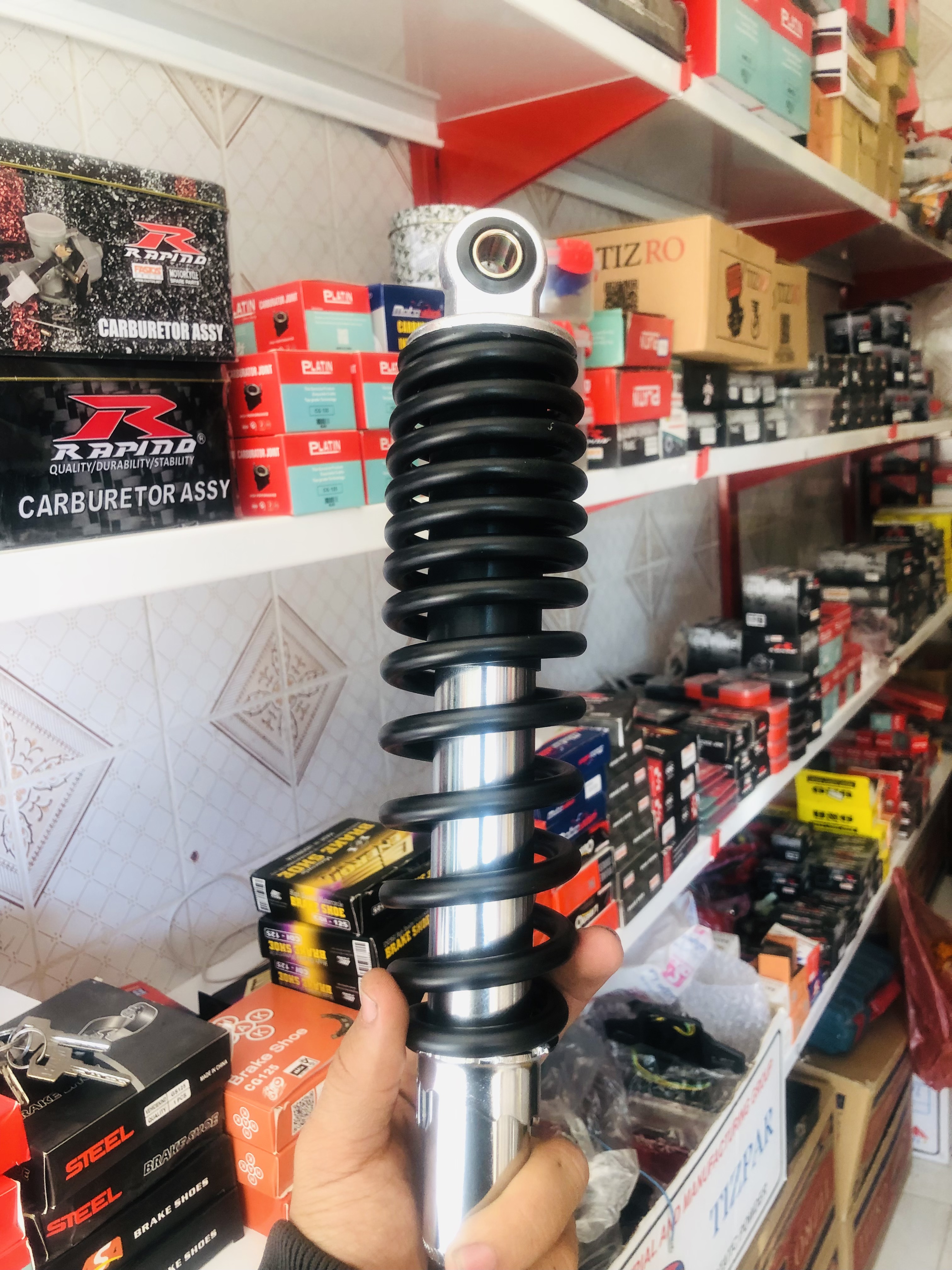 کمک فنر عقب موتور ضخیم مشکی از برند ال ایکس یه کار بسیار عالی و مقاوم مناسب برای انواع موتورهای سی جیال یا مدل های شکاری مانند احسان شکاری همتاز و..