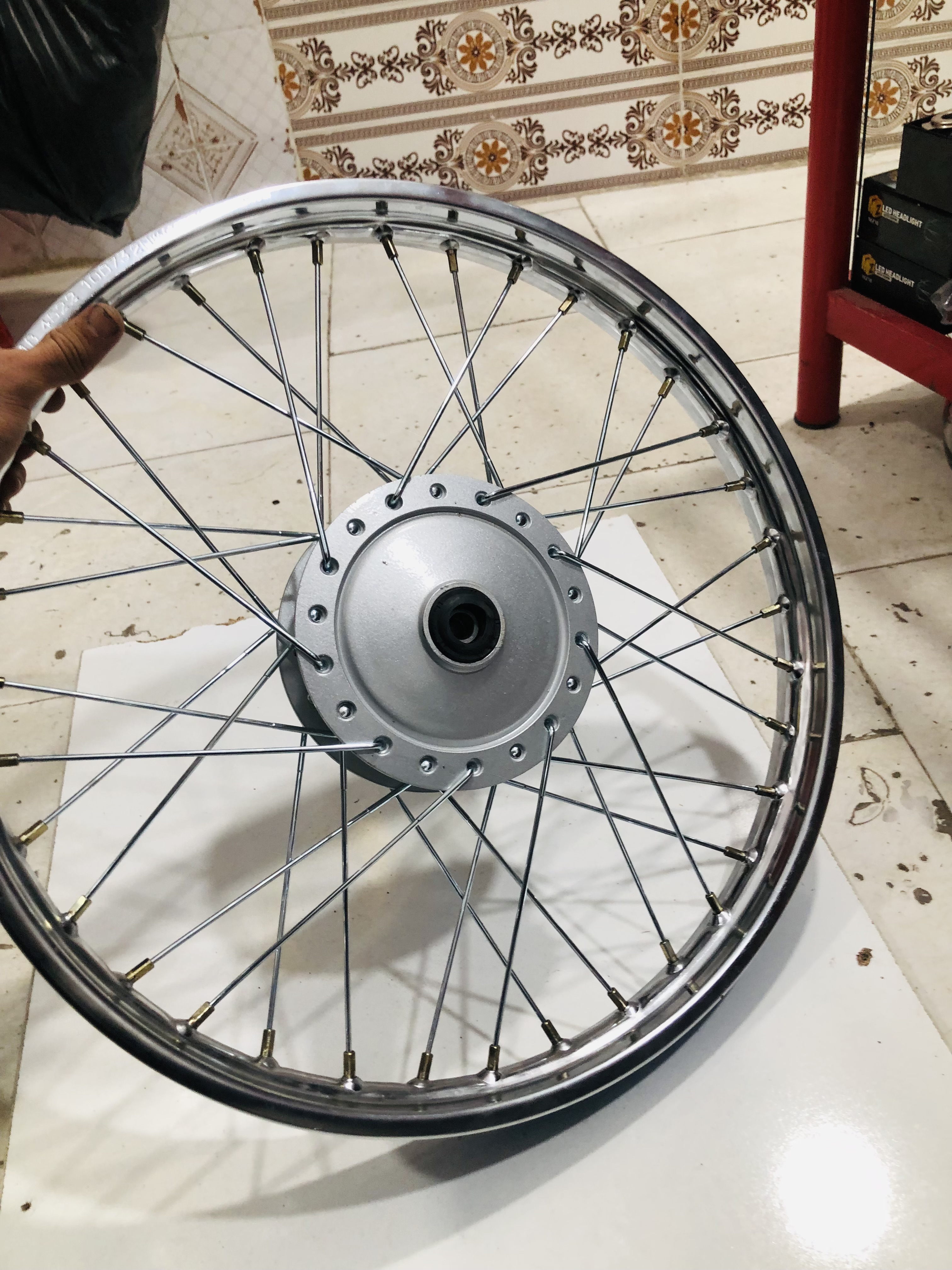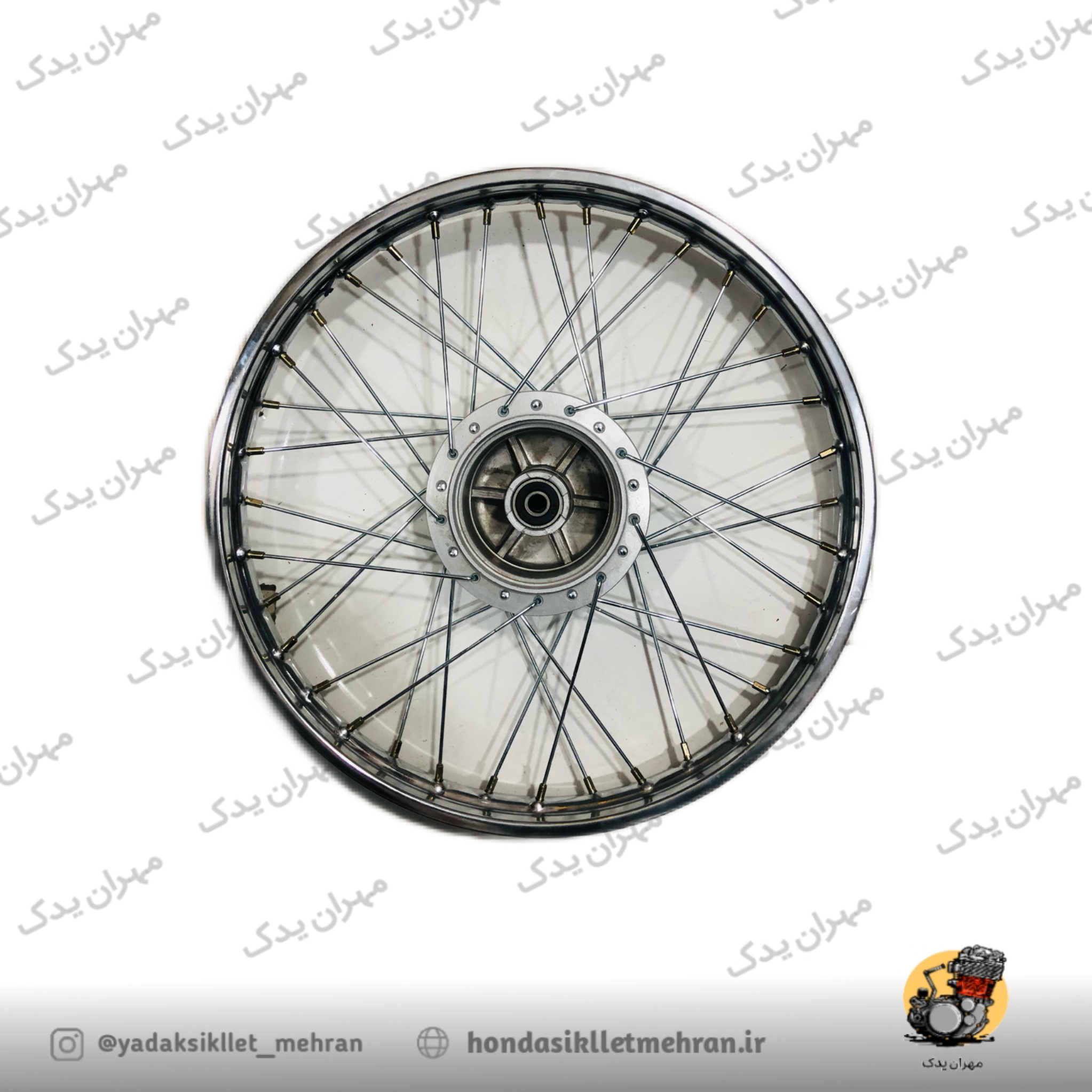 چرخ جلو کامل موتور مناسب انواع موتور سیکلت های هوندا مقاوم و سیم پره های ضخیم توپی درجه یک و تاب گیری شده