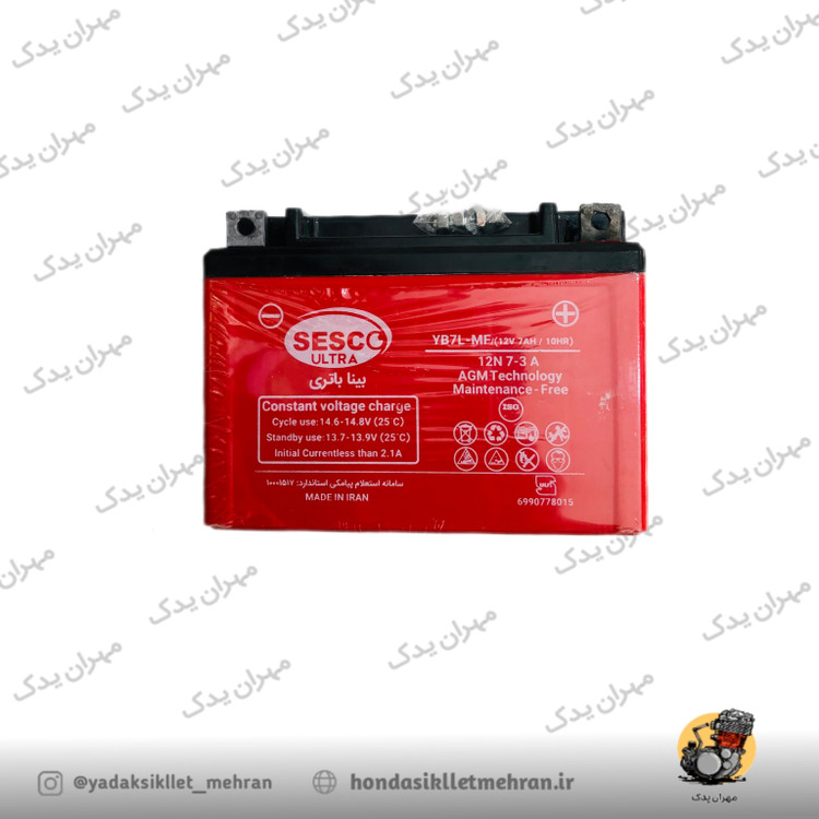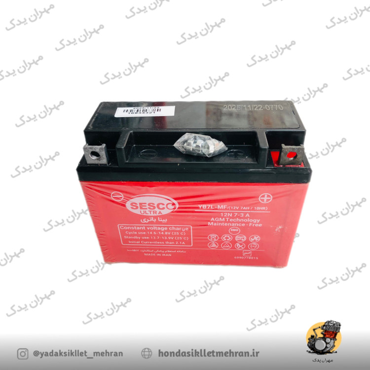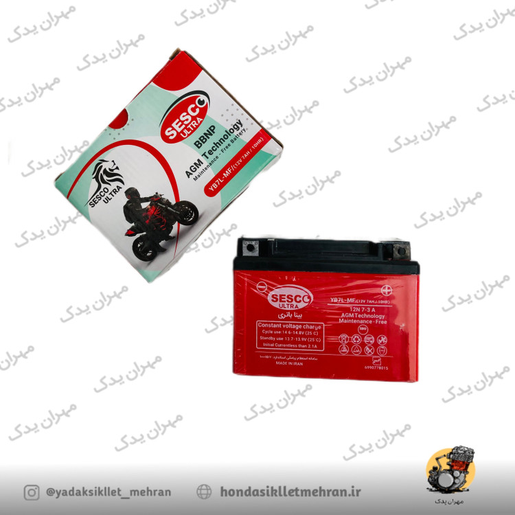 باتری موتور سیکلت هوندا سسکو ۱۲ ولت ۷ آمپر پایه کوتاه
