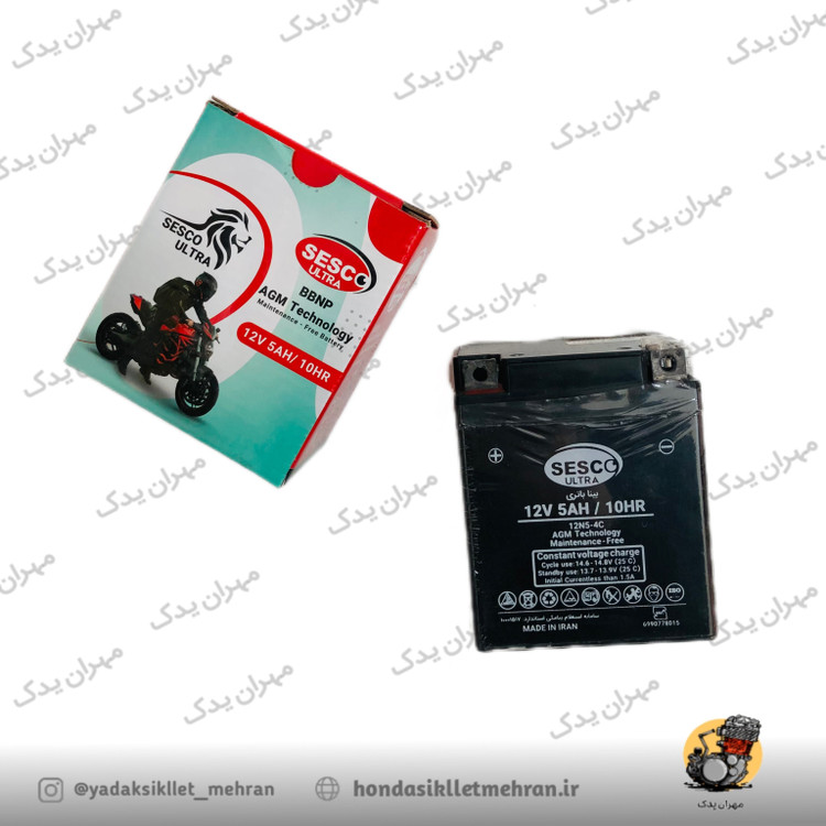 باتری سسکو موتور هوندا ۱۲ ولت ۵ آمپر پایه بلند